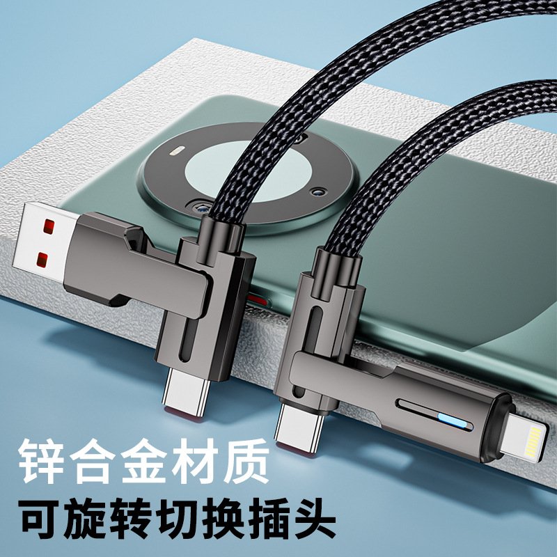 4 in 1 charging cable, 100W fast charging cable, rotating USB-C Lightning cable, multi connector cable, USB-C to Lightning cable, iPhone Android charging cable, nylon braided cable, zinc alloy cable, dual ended charging cable, fast charge cable, universal charging cable, iPhone 15 USB-C cable, 2m charging cable